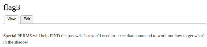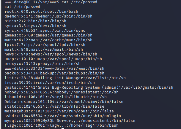 flag 的提示词是 passwd、-exec、shadow,看一下 /etc/passwd, 发现 flag4