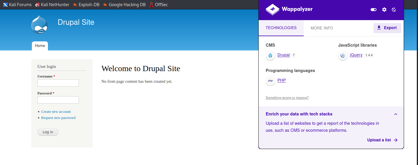 通过 Wappalyzer 发现网站 CMS 为 Drupal