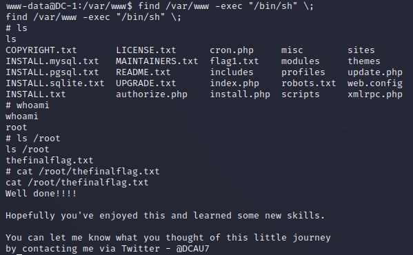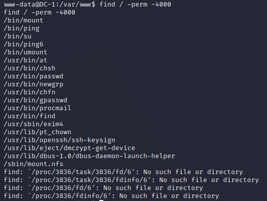 看到 find 命令有 SUID 权限,所以这里可以利用 find 命令进行提权