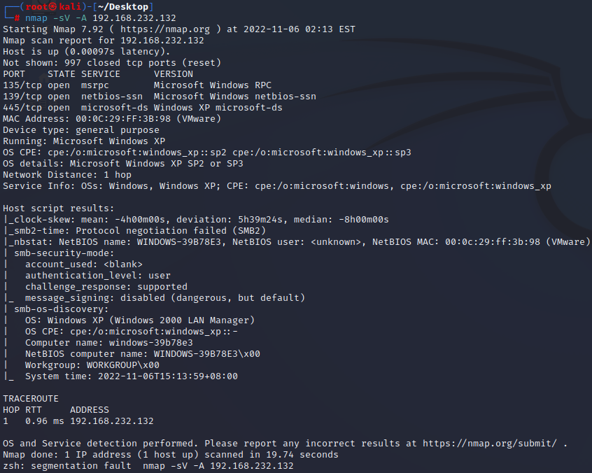 2、利用 Nmap 扫描发现靶机 (Windows) 运行了该服务。P99-100